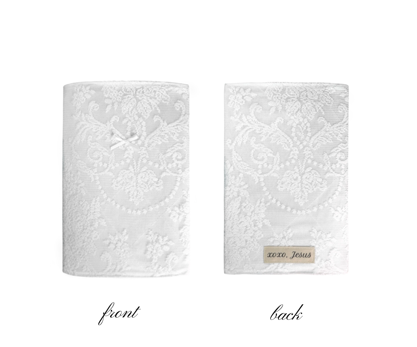 The 'love letters' bible cover is made to cover the word of God but can be used to cover your words of gratitude back to Him too. Browse through our size chart to found a fitting size for your prayer journal. Pair with the 'xoxo, Jesus' bible cover for the loveliest devotional duo.